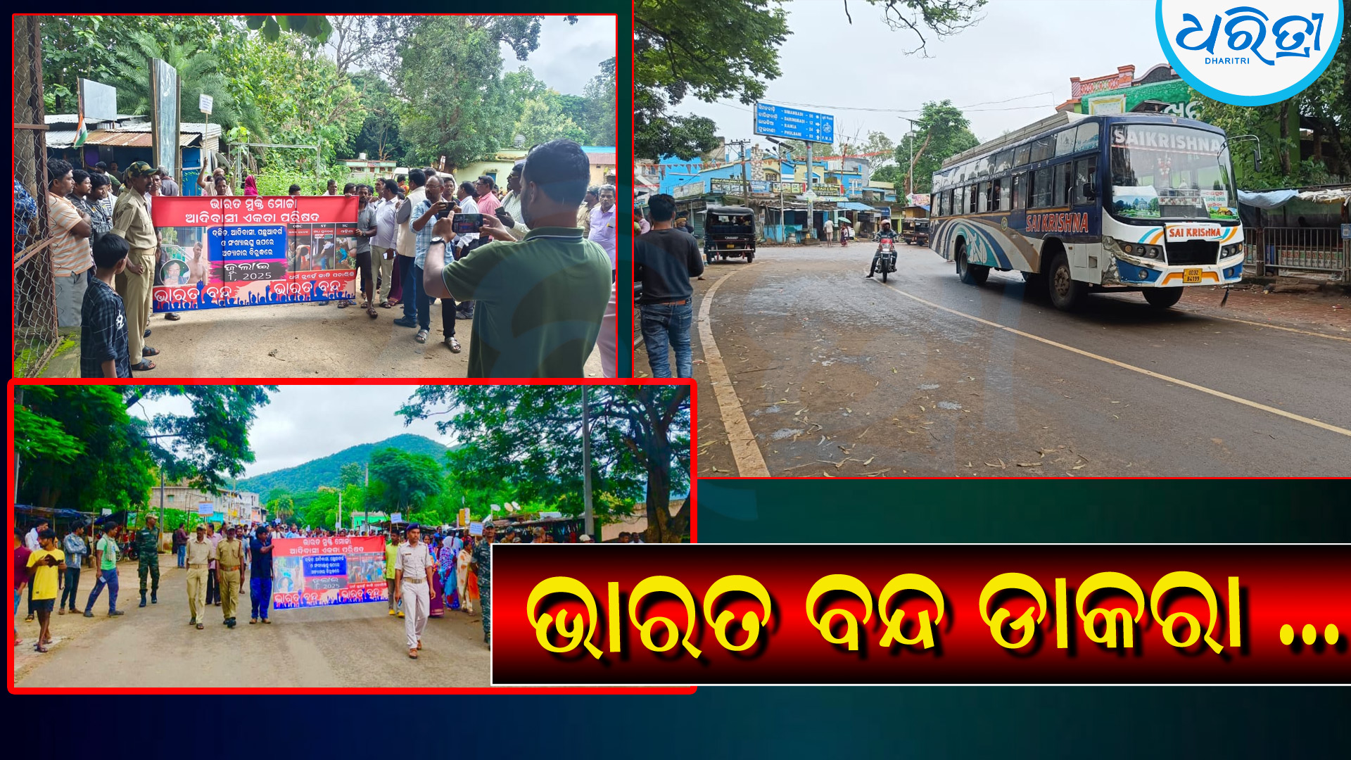 ଦାରିଙ୍ଗବାଡି,୧।୭(ଅରୁଣ ସାହୁ): ବିଭିନ୍ନ ସଂଗଠନ ପକ୍ଷରୁ ମଙ୍ଗଳବାର ଭାରତବନ୍ଦ ଡାକରା ଦିଆଯାଇଥିଲା ଏଥିରେ ଦାରିଙ୍ଗବାଡି ବ୍ଲକ ପ୍ରଭାବିତ ହୋଇଥିଲା। ଉକ୍ତ ବ୍ଲକର ଦୁର୍ଗମ କାଟିଙ୍ଗିଆ ପଞ୍ଚାୟତ ସମେତ ବ୍ରାହ୍ମଣୀଗାଁ, ଦାରିଙ୍ଗବାଡି ଏବଂ ସିମନବାଡିରେ ଦୋକାନବଜାର ବନ୍ଦ ରହିବା ସହ କିଛି ସ୍ଥାନରେ ଗାଡି ମୋଟର ମଧ୍ୟ ସମ୍ପୂର୍ଣ୍ଣ ବନ୍ଦ ରହିଥିବା ଦେଖିବାକୁ ମିଳିଛି। ତେବେ ବ୍ରହ୍ମପୁରରୁ ଦାରିଙ୍ଗବାଡି ଦେଇ ବସ ଚଳାଚଳ କରିଥିଲା। ଖବର ଲେଖିବା ସୁଦ୍ଧା ଅପରାହ୍ନରେ ଏହି ବନ୍ଦ ଡାକରାକୁ ବନ୍ଦ କରିଥିଲେ ଆନ୍ଦୋଳନକାରୀ । ବିଭିନ୍ନ ସ୍ଥାନରେ ଆନ୍ଦୋଳନକାରୀ ମାନେ ଟାୟାର ଜାଳି ରାସ୍ତା ଅବରୋଧ କରି ଆନ୍ଦୋଳନ କରିଥିଲେ। ବ୍ରାହ୍ମଣୀଗାଁରେ ସଭା ଓ ଶୋଭାଯାତ୍ରା ମାଧ୍ୟମରେ ବିକ୍ଷୋଭ କରାଯାଇଥିବା ଦେଖିବାକୁ ମିକିଛି।