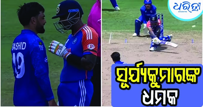 ସୂର୍ଯ୍ୟକୁମାର ପଡ଼ିଆକୁ ଆସିବା ମାତ୍ରେ ରଶିଦଙ୍କ ବଲରେ ପ୍ରହାର କରିଥିଲେ। ଏଥିରେ ଦୁଇଟି ଚାରି ଏବଂ ଗୋଟିଏ ଛଅ ସାମିଲ ଅଛି। ଆଇସିସି ଏହି ଘଟଣାର ଭିଡିଓ ଜାରି କରିଛି। ସୂର୍ଯ୍ୟକୁମାର ଏହା କରିବା ପରେ ରସିଦ ମଧ୍ୟ ରାଗିଯାଇଥିବାର ଦେଖାଯାଏ। ଅବଶ୍ୟ ଉଭୟ ଥଟ୍ଟାରେ କିଛି କହୁଥିବା ଦେଖାଯାଇଛି।