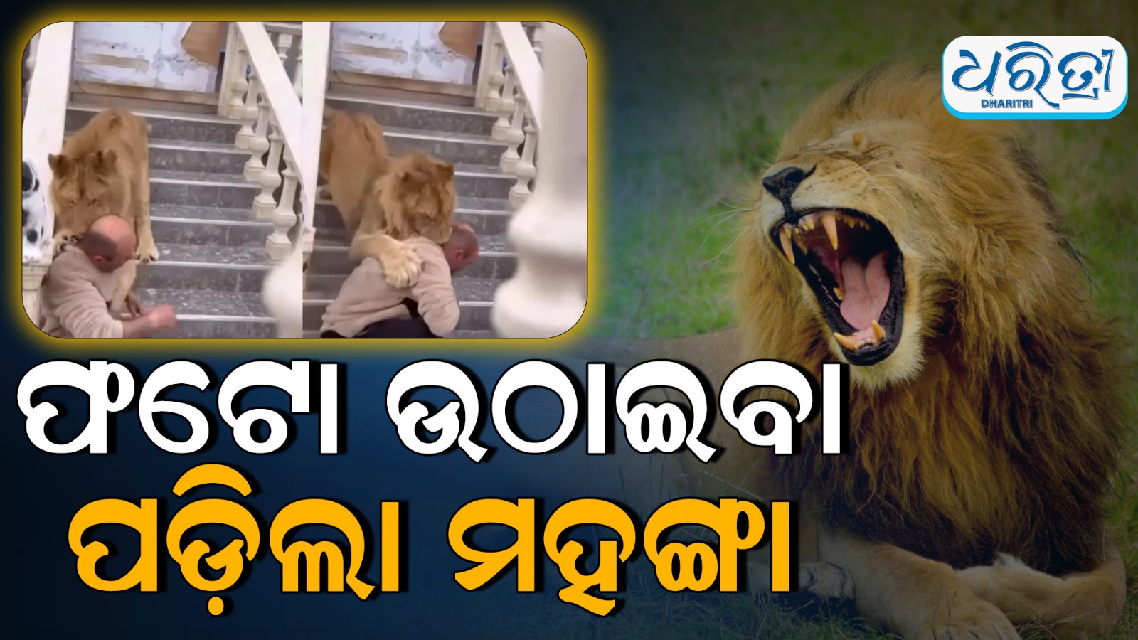 ଆଜିକାଲି ସୋସିଆଲ ମିଡିଆରେ ଏକ ଲୋମଟାଙ୍କୁରା ଭିଡିଓ ଭାଇରାଲ ହେବାରେ ଲାଗିଛି। ସିଂହ ସହ ଫଟୋ ଉଠାଇବାକୁ ଯାଇଥିବା ଜଣେ ବ୍ୟକ୍ତିଙ୍କ ଜୀବନ କିପରି ବିପଦରେ ପଡ଼ିଯାଇଛି। ତାହା ଏହି ଭିଡିଓରେ ଦେଖିବାକୁ ମିଳିଛି।