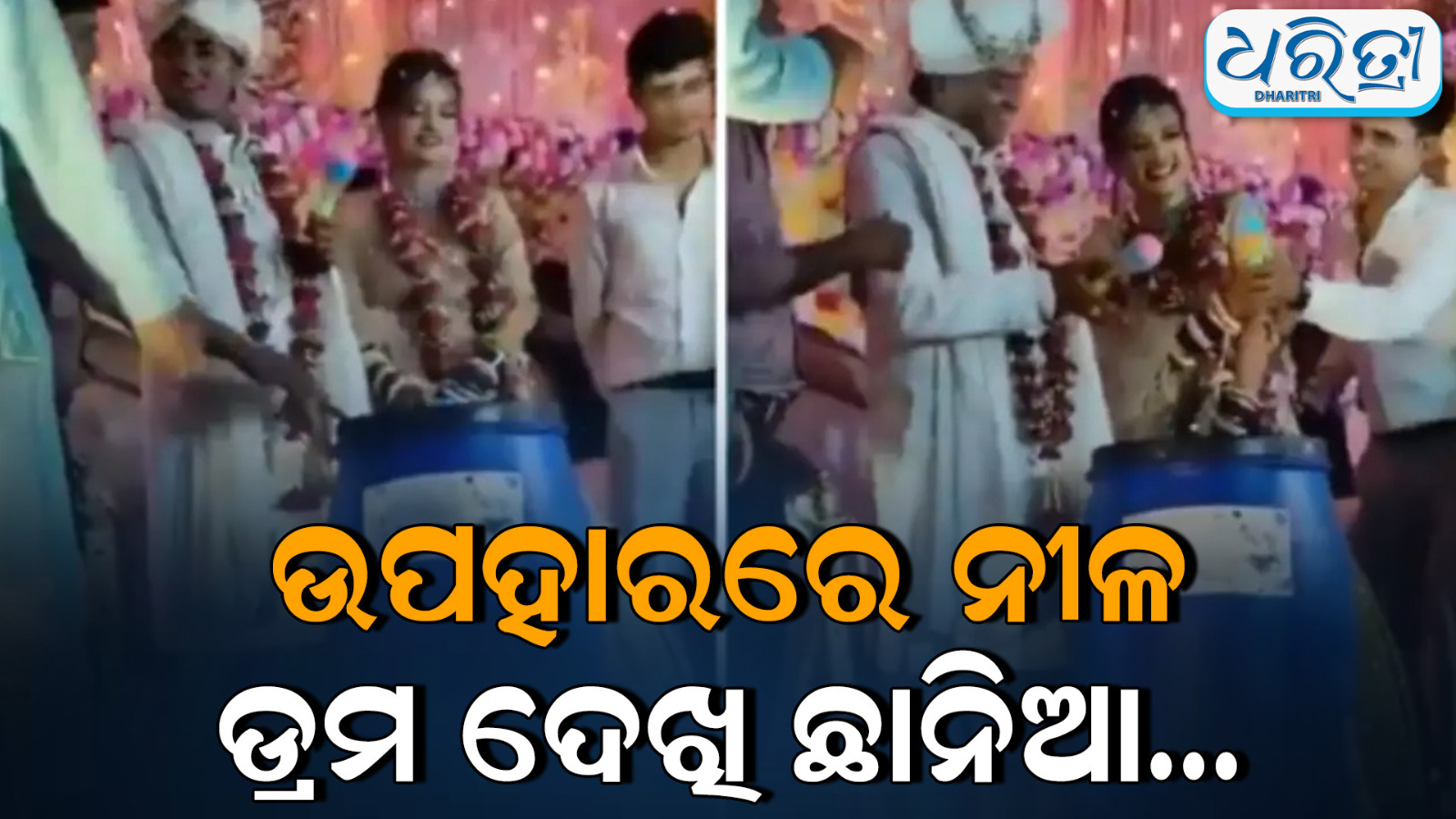 ଉତ୍ତର ପ୍ରଦେଶର ହମିରପୁରରେ ଏକ ନବ ବିବାହିତ ଦମ୍ପତିଙ୍କୁ ବିବାହ ମଞ୍ଚରେ ସେମାନଙ୍କ ବନ୍ଧୁମାନେ ଏକ ନୀଳ ଡ୍ରମ ଉପହାର ଦେଇଥିଲେ। ଏହି ଭିଡିଓ ଆଜିକାଲି ସୋସିଆଲ ମିଡିଆରେ ଭାଇରାଲ ହେଉଛି। ଏହି ଭିଡିଓ ଦେଖିବା ପରେ ଅନେକ ଲୋକ ଏହା କେବଳ ମଜା ପାଇଁ ବୋଲି ଭାବୁଛନ୍ତି।