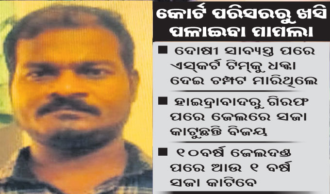 ସୂଚନା ଅନୁଯାୟୀ, ବାଲିପାଟଣା ଥାନା ଅନ୍ତର୍ଗତ ପଦ୍ମପୁର ଅଞ୍ଚଳର ବିଜୟ ୧୦୫ କେଜି ଗଞ୍ଜେଇ ସହ ୨୦୨୦ ସେପ୍ଟେମ୍ବର ୧୧ରେ କଟକ ଜିଲା ଅବକାରୀ ବିଭାଗର ଫ୍ଲାଇଂ ସ୍କ୍ବାଡ୍ ଦ୍ୱାରା ଗିରଫ ହୋଇ ଜେଲ ଯାଇଥିଲେ। ୨୦୨୨ ଜୁନ ୨୫ରେ କୋର୍ଟ ଏହି ମାମଲାର ଚୂଡ଼ାନ୍ତ ରାୟ ପ୍ରକାଶ କରି ଦଣ୍ଡାଦେଶ ଶୁଣାଇଥିଲେ। ପରେ ୨ଜଣିଆ ଏସ୍କର୍ଟ ଟିମ୍ ବିଜୟଙ୍କୁ ଧରି କୋର୍ଟରୁ ଜେଲ ନେଉଥିବାବେଳେ ସେ ଧକ୍କା ଦେଇ ଖସି ପଳାଇଥିଲେ। ଏନେଇ ବଡ଼ଗଡ଼ ଥାନାରେ ଏତଲା ପରେ ପୋଲିସ ଏକ ମାମଲା (ନଂ.୨୧୮/୨୦୨୩) ରୁଜୁ କରି ଅଗଷ୍ଟ ୨୮ରେ ହାଇଦ୍ରାବାଦରୁ ବିଜୟଙ୍କୁ ଗିରଫ କରିଥିଲା। ପରେ ତାଙ୍କୁ ଜେଲକୁ ପଠାଇ ଦିଆଯାଇଥିଲା। ମାମଲାରେ ୬ଜଣ ସାକ୍ଷୀଙ୍କ ଆଧାରରେ କୋର୍ଟ ରାୟ ଶୁଣାଇଥିଲେ। ସରକାରଙ୍କ ପକ୍ଷରୁ ସହକାରୀ ସରକାରୀ ଓକିଲ ବିଶ୍ୱରଞ୍ଜନ ରାଉତ ଓ ସୁଶାନ୍ତ କୁମାର ଦାସ ମାମଲା ପରିଚାଳନା କରୁଥିଲେ।
