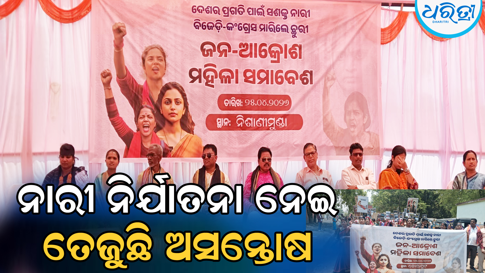 କୋରାପୁଟ,୨୫ା୪(ଅମିତାଭ ବେହେରା): ମହିଳାଙ୍କ ଉପରେ ବୃଦ୍ଧି ପାଉଥିବା ଅତ୍ୟାଚାର ଓ ଅସୁରକ୍ଷିତ ପ୍ରତିବାଦରେ କୋରାପୁଟ ସହରରେ ଏକ ବିଶାଳ ଜନ-ଆକ୍ରୋଶ ରାଲି ଆୟୋଜିତ ହୋଇଛି। କୋରାପୁଟସ୍ଥିତ ଟାଉନହଲଠାରୁ ବିଭିନ୍ନ ସଂଗଠନର ଶତାଧିକ ମହିଳା ଏଥିରେ ଯୋଗଦେଇ ହାତରେ ପ୍ଲାକାର୍ଡ ଧରି ନାରୀ ସୁରକ୍ଷା ଦାବିରେ ସ୍ଲୋଗାନ ଦେଇଥିଲେ। ରାଲିରେ ଅଂଶଗ୍ରହଣକାରୀମାନେ ଦେଶର ବିଭିନ୍ନ ସ୍ଥାନରେ ଘଟୁଥିବା ନାରୀ ନିର୍ଯାତନା ଘଟଣାକୁ ନେଇ ତୀବ୍ର ଅସନ୍ତୋଷ ପ୍ରକାଶ କରିଥିଲେ। ଦୋଷୀଙ୍କ ବିରୋଧରେ କଡ଼ା କାର୍ଯ୍ୟାନୁଷ୍ଠାନ ସହ ମହିଳାଙ୍କ ପାଇଁ ସୁରକ୍ଷିତ ପରିବେଶ ସୃଷ୍ଟି କରିବାକୁ ସରକାରଙ୍କୁ ଦାବି କରାଯାଇଛି।