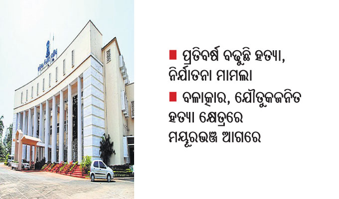 ମହିଳାଙ୍କୁ ହତ୍ୟା ସଂଖ୍ୟା ମଧ୍ୟ ପ୍ରତ୍ୟେକ ବର୍ଷ ବଢ଼ିବାରେ ଲାଗିଛି। ୨୦୧୯ରେ ୧୩୫୬ ଜଣଙ୍କୁ ହତ୍ୟା କରାଯାଇଥିବା ନେଇ ମାମଲା ରୁଜୁ ହୋଇଛି। ସେହିପରି ୨୦୨୦ରେ ଏହି ମାମଲା ସଂଖ୍ୟା ବୃଦ୍ଧି ଘଟି ୧୪୭୦ ହୋଇଛି। ୨୦୨୧ ଜୁନ୍ ସୁଦ୍ଧା ଏହି ସଂଖ୍ୟା ୭୮୨ ରହିଛି। ସମାନଭାବେ ଯୌତୁକଜନିତ ହତ୍ୟା ସଂଖ୍ୟା ମଧ୍ୟ ବଢ଼ିଚାଲିଛି। ଏ କ୍ଷେତ୍ରରେ ମଧ୍ୟ ମୟୂରଭଞ୍ଜ ଜିଲା ସର୍ବାଗ୍ରେ ରହିଛି। ୨୦୧୯ରେ ଯୌତୁକଜନିତ ହତ୍ୟା ନେଇ ୨୭୮ ମାମଲା ରୁଜୁ ହୋଇଛି। ୨୦୨୦ରେ ଯୌତୁକଜନିତ ହତ୍ୟା ସଂଖ୍ୟା ବୃଦ୍ଧି ଘଟି ୩୧୧ ରହିଛି। ୨୦୨୧ ଜୁନ୍ ସୁଦ୍ଧା ଏହି ସଂଖ୍ୟା ୧୮୪ରେ ରହିଛି।