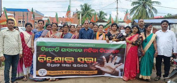 ବିଜେଡି ଶାସନରେ ମହିଳାମାନେ ବିପଦରେ ରହିଛନ୍ତି, ଯାହାର ଉଦାହରଣ ଏନ୍ସିଆରବି ରିପୋର୍ଟରୁ ଜଳଜଳ ହୋଇ ଦେଖାଯାଉଛି। ମହିଳାମାନଙ୍କୁ ଯଦି ରାଜ୍ୟ ସରକାର ସୁରକ୍ଷା ପ୍ରଦାନ ନ କରନ୍ତି, ତାହା ହେଲେ ଆଗାମୀ ଦିନରେ ଭାଜପା ମହିଳା ମୋର୍ଚ୍ଚା ଜିଲା ସମେତ ରାଜ୍ୟ ବ୍ୟାପି ଆନ୍ଦୋଳନ କରିବ ବୋଲି ଚେତାବନୀ ଦେଇଛନ୍ତି। ଜିଲା ସଭାନେତ୍ରୀ ନିରୁପମା ନାଏକଙ୍କ ନେତୃତ୍ୱରେ ଅନୁଷ୍ଠିତ କାର୍ଯ୍ୟକ୍ରମରେ ଜିଲା ଉପସଭାନେତ୍ରୀ ସୋଭାଗିନୀ ପାତ୍ର, ସନ୍ତୋଷୀ ଦାସ, ଯାଜ୍ଞସିନୀ ମହାନନ୍ଦ, ଜିଲା ସମ୍ପାଦିକା କାଞ୍ଚନ ବାଗ, ରାଜ୍ୟ କାର୍ଯ୍ୟକାରିଣୀ ସଦସ୍ୟା କୁନ୍ତି ପାଲ, ବୋରିଆ ମଣ୍ଡଳ ସଭାନେତ୍ରୀ ଦେବକୀ ସିନ୍ଦୁର, ଜିଲା କାର୍ଯ୍ୟକାରିଣୀ ସଦସ୍ୟା ସଂଯୁକ୍ତା ମହତୀ, ରୀନା ଭାଟି, କାଉନସିଲର ମଞ୍ଜୁଲତା ସେଠୀ, ମାଧବୀ ବାଗ, ରାଜ୍ୟ କାର୍ଯ୍ୟକାରିଣୀ ସଦସ୍ୟ ମନୋଜ ମେହେର, ପୂର୍ବତନ ବ୍ଲକ ଉପାଧ୍ୟକ୍ଷ ଟଙ୍କଧର ନାଏକ, ଏମ୍ପି ପ୍ରତିନିଧି ଚନ୍ଦ୍ର ହାସ୍ୟ ବିଶ୍ୱାଳ, ଭବାନୀଶଙ୍କର ଠାକୁର ପ୍ରମୁଖ ସାମିଲ ଥିଲେ।