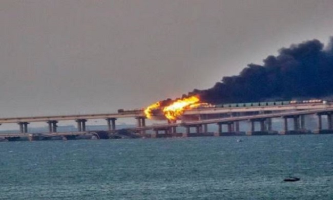 ମସ୍କୋ,୧୦ ।୧୦: ରୁଷିଆ-ୟୁକ୍ରେନ୍ ଯୁଦ୍ଧ ଏବେ ଏକ ଭୟଙ୍କର ପରିସ୍ଥିତିରେ ପହଞ୍ଚିଛି । ଏବେ ରୁଷିଆ ସେନା ଲାଗାତାର କ୍ଷତିର ସାମ୍ନା କରି ଚାଲିଛନ୍ତି । ଶନିବାର ରୁଷିଆ ଓ କ୍ରିମିଆକୁ ଯୋଡୁଥିବା ପୋଲ ଉପରେ ଥିବା ଏକ ଟ୍ରକରେ ରଖାଯାଇଥିବା ବିସ୍ଫୋରକରେ ନିଆଁ ଲାଗିଯିବାରୁ ଭୟଙ୍କର ବିସ୍ଫୋରଣ ହୋଇଥିଲା । ଫଳରେ ଏକ ସର୍ବ ବୃହତ୍ତ ପୋଲର ଅଧାଭାଗ ସମୁଦ୍ରରେ ମିଶି ଯାଇଥିଲା । ଏହି ବିସ୍ଫୋରଣ ପରେ ରୁଷିଆ ରାଷ୍ଟ୍ରପତି ଭ୍ଲାଦିମିର ପୁଟିନ କହିଛନ୍ତି, ଏହା ୟୁକ୍ରେନ ଗୁଇନ୍ଦା ସେବାର କାମ । ବିସ୍ଫୋରଣ ପାଇଁ ସେ ୟୁକ୍ରେନ ଗୁଇନ୍ଦା ସେବାକୁ ଦାୟୀ କରିବା ସହ ଏହାର ଘୋର ନିନ୍ଦା କରିଛନ୍ତି ।
