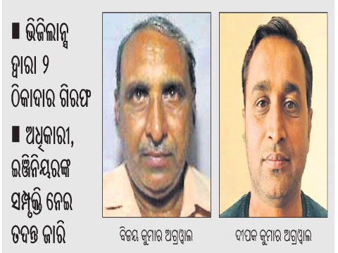 ସୋନପୁର,୨୯ା୮(ମୃତ୍ୟୁଞ୍ଜୟ ଶତପଥୀ):ସୁବର୍ଣ୍ଣପୁର ଜିଲାରେ ୪ଟି ନିମ୍ନମାନର ଅନୁସୂଚିତ ଜାତି(ଏସ୍ସି) ଛାତ୍ରୀନିବାସ ନିର୍ମାଣ କରି ସରକାରୀ ଟଙ୍କା ତୋସରପାତ ହୋଇଥିଲା। ଅଭିଯୋଗ ପରେ ଭିଜିଲାନ୍ସ ବିଭାଗ ଏହାର ତଦନ୍ତ କରୁଥିଲା। ଏହି ଘଟଣାରେ ପ୍ରଥମ ଶ୍ରେଣୀ ଠିକାଦାର ବିଜୟ କୁମାର ଅଗ୍ରଓ୍ବାଲ ଓ ତାଙ୍କ ପାଓ୍ବାର ଅଫ୍ ଆଟର୍ନି ହୋଲ୍ଡର ଦୀପକ କୁମାର ଅଗ୍ରଓ୍ବାଲ ଭିଜିଲାନ୍ସ ଦ୍ୱାରା ଗିରଫ ହୋଇଛନ୍ତି। ସୋମବାର ଉଭୟଙ୍କୁ ରାଉରକେଲାରୁ ଗିରଫ ପରେ ବଲାଙ୍ଗୀର ସ୍ବତନ୍ତ୍ର ଭିଜିଲାନ୍ସ କୋର୍ଟରେ ହାଜର କରାଯାଇଥିଲା। ଜାମିନ ନାମଞ୍ଜୁର ହେବାରୁ ଉଭୟଙ୍କୁ ବଲାଙ୍ଗୀର ଜେଲ ହାଜତକୁ ପଠାଇ ଦିଆଯାଇଛି।