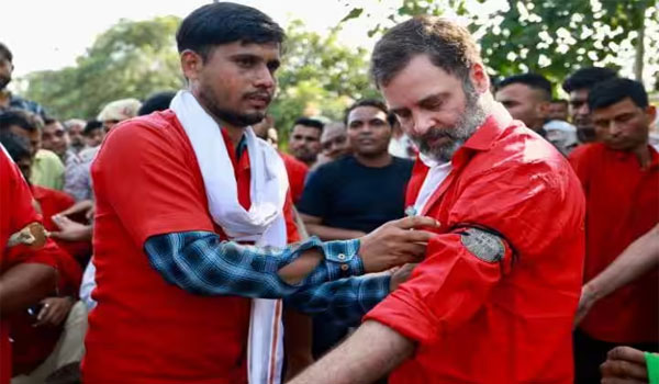 ନୂଆଦିଲ୍ଲୀ,୨୧।୯: କଂଗ୍ରେସ ନେତା ରାହୁଲ ଗାନ୍ଧୀ ଗୁରୁବାର ଦିଲ୍ଲୀର ଆନନ୍ଦ ବିହାର ରେଳ ଷ୍ଟେଶନରେ ପହଞ୍ଚି ସେଠାରେ କୁଲିମାନଙ୍କୁ ଭେଟିଛନ୍ତି। ଏହି ସମୟରେ ରାହୁଲ ଗାନ୍ଧୀ ମଧ୍ୟ କୁଲି ପୋଷାକ ପିନ୍ଧିଥିବାର ନଜର ଆସିଛନ୍ତି। ନାଲି ସାର୍ଟ, ମୁଣ୍ଡରେ ଠେକା ଓ ବାହୁରେ କଳା ବ୍ୟାଚ୍ ପିନ୍ଧି ଗୋଟିଏ ଶୁଟକେସକୁ ମୁଣ୍ଡରେ କିଛି ବାଟ ଚାଲିଛନ୍ତି ରାହୁଲ ଗାନ୍ଧୀ।