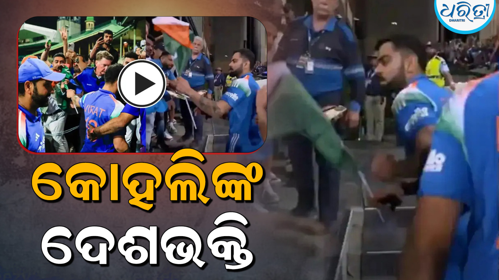 ସିଡନୀ,୨୬।୧୦: ଭାରତ ଏବଂ ଅଷ୍ଟ୍ରେଲିଆ ମଧ୍ୟରେ ଖେଳାଯାଇଥିବା ତୃତୀୟ ଏକଦିବସୀୟ ମ୍ୟାଚ୍ରେ ଭାରତୀୟ ଦଳ ଏକ ବଡ଼ ବିଜୟ ହାସଲ କରିଥିଲା। ଏହି ମ୍ୟାଚ୍ରେ ଦଳର ଷ୍ଟାର ବ୍ୟାଟ୍ସମ୍ୟାନ ବିରାଟ କୋହଲି ତାଙ୍କର ଦେଶଭକ୍ତି ଆଭିମୁଖ୍ୟ ଦେଖାଇ ସମସ୍ତଙ୍କ ହୃଦୟ ଜିତିଥିଲେ। ଅଷ୍ଟ୍ରେଲିଆ ବିପକ୍ଷରେ ଲଗାତାର ଦୁଇଟି ମ୍ୟାଚ୍ରେ ଶୂନ୍ୟରେ ଆଉଟ ହେବା ପରେ ଶେଷ ମ୍ୟାଚ୍ରେ କୋହଲି ଅପରାଜିତ ୭୪ ରନ କରି ଫର୍ମକୁ ଫେରିଥିଲେ। ଫଳରେ ଭାରତ ୯ ଉଇକେଟରେ ବିଜୟ ହାସଲ କରିଥିଲା।