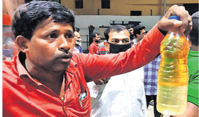 ଭୁବନେଶ୍ୱର,୪।୩(ବୂ୍ୟରୋ): ଭୁବନେଶ୍ୱର ବରମୁଣ୍ଡାସ୍ଥିତ ଏଚ୍ପି ପେଟ୍ରୋଲ ପମ୍ପରେ ପେଟ୍ରୋଲରେ ପାଣି ମିଶାଇ ଅପମିଶ୍ରଣ କରାଯାଉଥିବା ଜଣାପଡ଼ିବାପରେ ବୁଧବାର ସେଠାରେ ଉତ୍ତେଜନାମୂଳକ ପରିସ୍ଥିତି ସୃଷ୍ଟି ହୋଇଥିଲା। ଶହଶହ ଲୋକ ପାଣି ମିଶା ପେଟ୍ରୋଲ ବୋତଲ ଧରି ପେଟ୍ରୋଲ ପମ୍ପରେ ବିକ୍ଷୋଭ କରିବା ସହ ଅପମିଶ୍ରଣକାରୀଙ୍କ ବିରୋଧରେ କାର୍ଯ୍ୟାନୁଷ୍ଠାନ ଗ୍ରହଣ କରିବାକୁ ଦାବି କରିଥିଲେ। ତେବେ ଗୁରୁବାର ଏ ନେଇ ଖଣ୍ଡଗିରି ପୋଲିସ ଉକ୍ତ ପେଟ୍ରୋଲ ପମ୍ପଙ୍କୁ ସିଲ୍ କରିଛି। ପରେ ଫୋରେନ୍ସିକ ଲାବୋରୋଟୋରିର ସାଇଣ୍ଟିଫିକ ଟିମ୍ ଓ ଏଚ୍ପି କମ୍ପାନି ସାଇଣ୍ଟିଫିକ ଟିମ ଆସି ନମୁନା ସଂଗ୍ରହ କରିଛି । ଯଦି ଅପମିଶ୍ରଣ କରାଯାଉଥିବାର ପ୍ରମାଣ ମିଳେ, ତେବେ ଲାଇସେନ୍ସ ରଦ୍ଦ ହେବ ବୋଲି ଏଚ୍ପିର ଏରିଆ ଇନଚାର୍ଜ ଶୁଭବ୍ରତ ଖାନ କହିଛନ୍ତି।