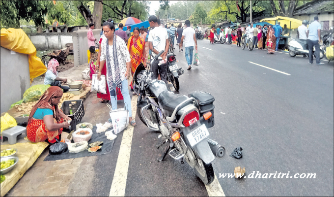ରାଉରକେଲା,୨୬।୬(ବିପ୍ଲବ ରଞ୍ଜନ ଦାଶ): ରାଉରକେଲା ମାତାପୂଜା ଦୈନିକ ବଜାରରେ ବର୍ଷା ପାଣି ଯୋଗୁ ବ୍ୟବସାୟୀମାନେ ମୁଖ୍ୟରାସ୍ତାରେ ବିକ୍ରିବଟା କରୁଥିବା ଦେଖିବାକୁ ମିଳିଛି। ଫଳରେ ଯାନବାହନ ଚଳାଚଳରେ ଅସୁବିଧା ସହ ଟ୍ରାଫିକ୍ ସମସ୍ୟା ସୃଷ୍ଟି ହେଉଛି।