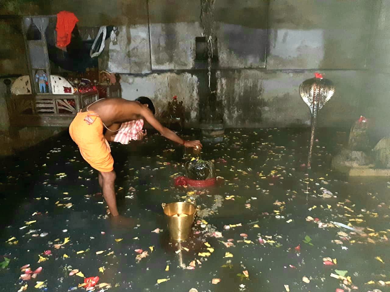 ଆରଡି, ୨୬।୮,(ଡି.ଏନ.ଏ.) : ଭଦ୍ରକ ଜିଲାର ପ୍ରସିଦ୍ଧ ଶୈବପୀଠ ଆରଡ଼ିରେ ଥିବା ବାବା ଆଖଣ୍ଡଳମଣିଙ୍କ ମନ୍ଦିର ଗର୍ଭଗୃହରେ ବର୍ଷା ପାଣି ପ୍ରବେଶ କରିବାରୁ ବାବା ଆଖଣ୍ଡଳମଣି ସମ୍ପୂର୍ଣ୍ଣ ଭାବେ ବୁଡିଯାଇଥିଲେ। ଲିଙ୍ଗ ବୁଡି ରହିଥିବାରୁ ବୁଧବାର ସକାଳେ ମଙ୍ଗଳଆଳତି ହେବାରେ ବିଳମ୍ବ ହୋଇଥିଲା। ପରେ ପମ୍ପସେଟ୍ ଯୋଗେ ଗର୍ଭଗୃହରୁ ପାଣି ସୁଖାଯାଇ ନୀତିକାନ୍ତି ସମାପିତ ହୋଇଥିଲା । ଅଧିକ ବର୍ଷା କିମ୍ବା ବନ୍ୟା ହେଲେ ପୂର୍ବରୁ ଏହି ସମସ୍ୟା ସୃଷ୍ଟି ହେଉଥିଲା। ତେଣୁ ୨୦୧୮ ମସିହାରେ ରାଜ୍ୟ ପ୍ରତ୍ନତତ୍ତ୍ବ ବିଭାଗ ପକ୍ଷରୁ ଗର୍ଭଗୃହ ପଥର ଚଟାଣ ମରାମତି କରାଯାଇଥିଲା। ହେଲେ ୩ ବର୍ଷ ନ ପୂରୁଣୁ ପୁଣି ପଥର ଚଟାଣ ଫାଟ ସୃଷ୍ଟି ହୋଇ ଗର୍ଭଗୃହରେ ପାଣି ଜମିବାକୁ ନେଇ ସ୍ଥାନୀୟ ଅଞ୍ଚଳରେ ଅସନ୍ତୋଷ ପ୍ରକାଶ ପାଇଛି ।