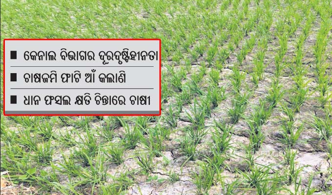 ସବୁ ଜମି ଶୁଖିଲା ପଡ଼ିଛି। ମାଟି ଫାଟି ଆଁ କଲାଣି। କେନାଲ ପାଣିକୁ ଅପେକ୍ଷା କରିଛୁ। ହେଲେ କେନାଲରେ ପାଣିର ଦେଖାନାହିଁ। ତଳମୁଣ୍ଡରେ ଅଧିକାଂଶ ଫସଲ ନଷ୍ଟ ହୋଇଗଲାଣି। ପାଣି ଶୀଘ୍ର ନ ଆସିଲେ ଉପରମୁଣ୍ଡ ଫସଲ ବି ଆଉ ରହିବ ନାହିଁ।