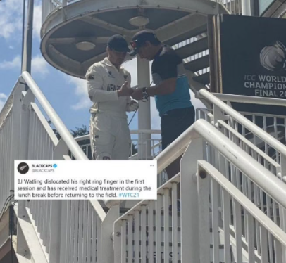ସାଉଥାମ୍ପଟନ,୨୩।୬: ଚଳିତ ବିଶ୍ୱ ଟେଷ୍ଟ ଚାମ୍ପିୟନଶିପ୍ (ଡବ୍ଲ୍ୟୁଟିସି) ଫାଇନାଲର ନିର୍ଣ୍ଣାୟକ ତଥା ୬ଷ୍ଠ ଦିନ ପ୍ରଥମ ସେସନରେ ନ୍ୟୁଜିଲାଣ୍ଡ ଉଇକେଟକିପର ବ୍ୟାଟ୍ସମ୍ୟାନ ବି ଜେ ଓ୍ବାଟଲିଂଙ୍କ ଆଙ୍ଗୁଠି ଭାଙ୍ଗି ଯାଇଥିଲା। ଆହତ ସମସ୍ୟା ସତ୍ତ୍ୱେ ସେ ଦ୍ୱିତୀୟ ସେସନ ପାଇଁ ପଡ଼ିଆକୁ ଓହ୍ଲାଇବା ସହ ଉଇକେଟକିପିଂ କରିଥିଲେ। ଅନ୍ତର୍ଜାତୀୟ କ୍ୟାରିୟରର ଅନ୍ତିମ ମ୍ୟାଚ୍ ଖେଳୁଥିବା ୩୫ ବର୍ଷୀୟ ଓ୍ବାଟଲିଂଙ୍କ ନେତୃତ୍ୱରେ ପଡ଼ିଆକୁ ଓହ୍ଲାଇଥିଲା ନ୍ୟୁଜିଲାଣ୍ଡ ଦଳ। ଏହି ଅବସରରେ ତାଙ୍କୁ ଭାରତୀୟ ଅଧିନାୟକ ବିରାଟ କୋହଲି ଶୁଭେଚ୍ଛା ଦେଇଥିଲେ।