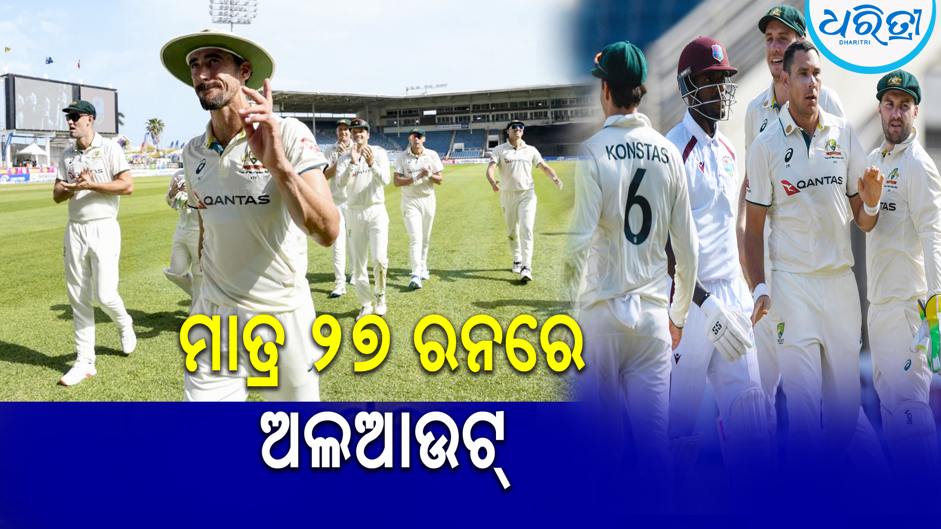 ନୂଆଦିଲ୍ଲୀ,୧୫।୭: ଜାମାଇକାରେ ଅନୁଷ୍ଠିତ ତୃତୀୟ ଟେଷ୍ଟ ମ୍ୟାଚରେ ଅଷ୍ଟ୍ରେଲିଆର ପିଙ୍କ ବଲ ଜାଦୁଗର ମିଚେଲ ଷ୍ଟାର୍କ ନିଜର ଅସାଧାରଣ ପ୍ରଦର୍ଶନ ଦେଖାଇ ଓ୍ଵେଷ୍ଟ ଇଣ୍ଡିଜକୁ ମାତ୍ର ୨୭ ରନରେ ଅଲଆଉଟ କରି ଟେଷ୍ଟ ଇତିହାସରେ ଦ୍ୱିତୀୟ ନିମ୍ନତମ ସ୍କୋର ରେକର୍ଡ ସୃଷ୍ଟି କରିଛନ୍ତି। ଏହି ମ୍ୟାଚରେ ଅଷ୍ଟ୍ରେଲିଆ ୧୭୬ ରନରେ ବିଜୟୀ ହୋଇ ସିରିଜ ୩-୦ରେ ଜିତି ଫ୍ରାଙ୍କ ଓ୍ଵରେଲ ଟ୍ରଫି ହାସଲ କରିଛି।