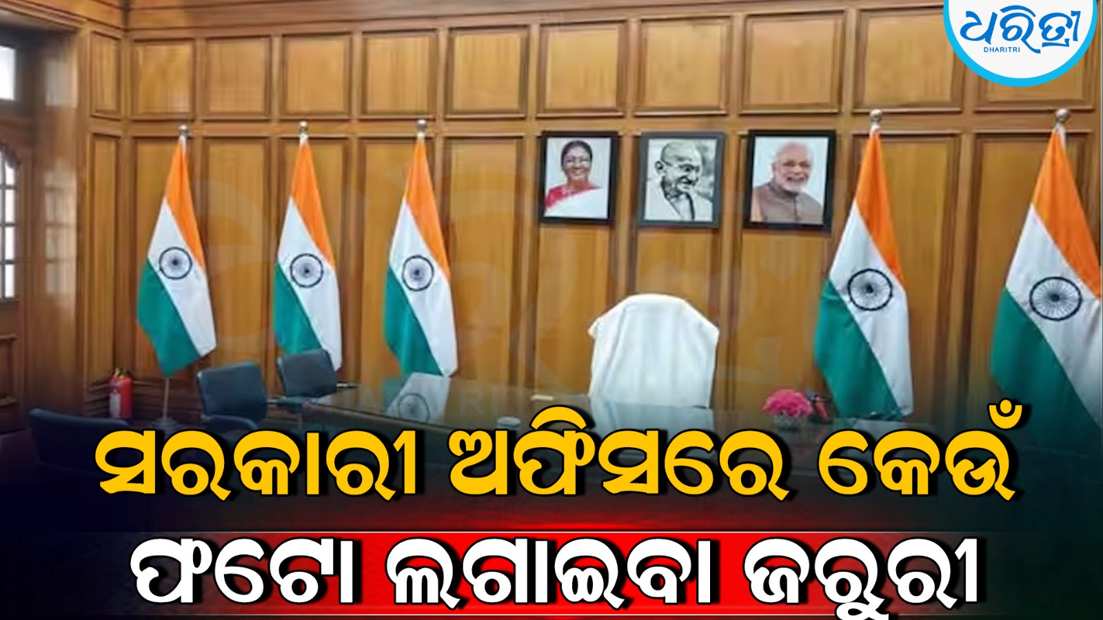କେନ୍ଦ୍ର ସରକାରଙ୍କ କାର୍ଯ୍ୟାଳୟରେ ମହାତ୍ମା ଗାନ୍ଧୀଙ୍କ ସହିତ ବର୍ତ୍ତମାନର ରାଷ୍ଟ୍ରପତି ଏବଂ ପ୍ରଧାନମନ୍ତ୍ରୀଙ୍କ ଫଟୋ ଲଗାଇବା ପାଇଁ ନିର୍ଦ୍ଦେଶ ରହିଛି। ଏଥିପାଇଁ ଆବଶ୍ୟକୀୟ ସୂଚନା ଏବଂ ଫଟୋଗ୍ରାଫ PIB ଦ୍ୱାରା ପ୍ରଦାନ କରାଯାଇଛି। ଯାହାକୁ ସମସ୍ତ କାର୍ଯ୍ୟାଳୟ ପାଳନ କରିବା ଆବଶ୍ୟକ।