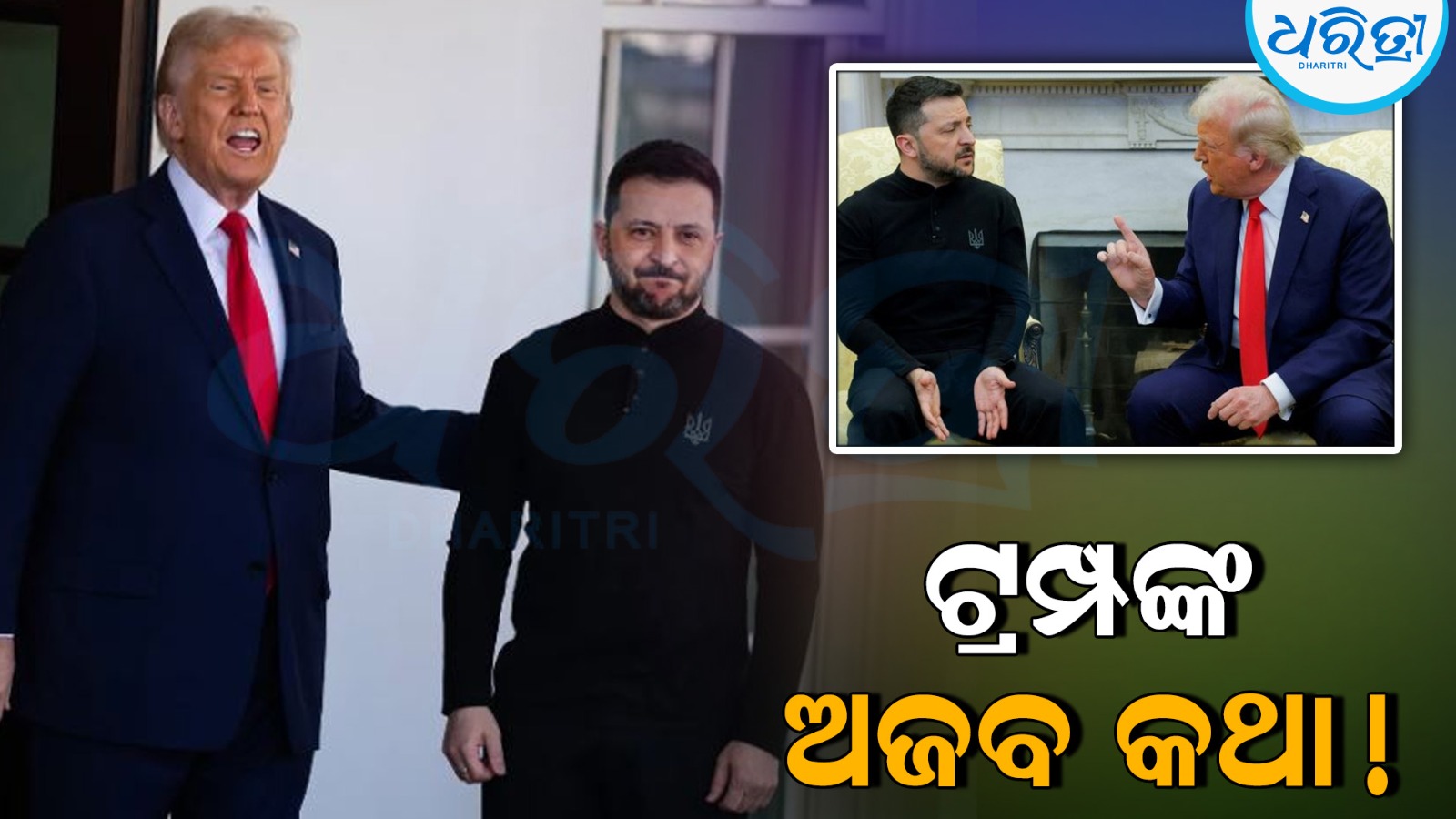 ଓଭାଲ ଅଫିସରେ ଏକ ବୈଠକରେ ଟ୍ରମ୍ପ ୟୁକ୍ରେନୀୟ ରାଷ୍ଟ୍ରପତି ଭୋଲୋଡିମିର ଜେଲେନସ୍କିଙ୍କୁ କଡ଼ା ସମାଲୋଚନା କରିଥିଲେ। ଏଥିରେ, ରୁଷିଆ ସହିତ ଶାନ୍ତି ଆଲୋଚନାରେ ୟୁକ୍ରେନର ସ୍ଥିତି ଉପରେ ପ୍ରଶ୍ନ ଉଠାଯାଇଥିଲା।