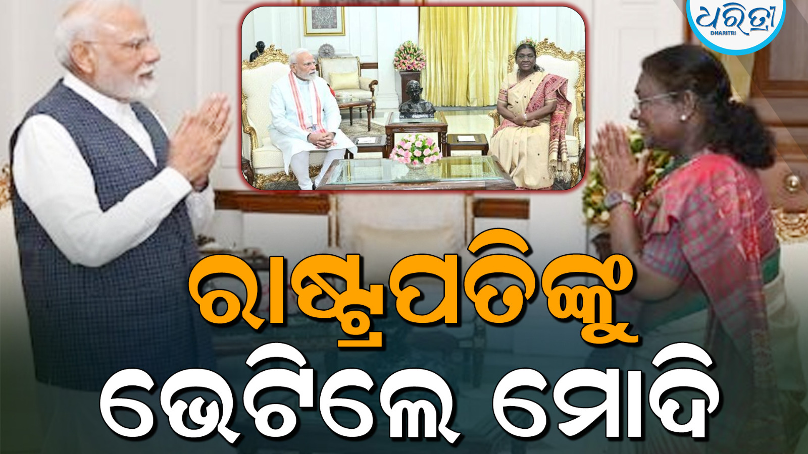 ନୂଆଦିଲ୍ଲୀ,୩।୮: ପ୍ରଧାନମନ୍ତ୍ରୀ ନରେନ୍ଦ୍ର ମୋଦି ରବିବାର ରାଷ୍ଟ୍ରପତି ଭବନରେ ପହଞ୍ଚିଥିଲେ। ଏଠାରେ ସେ ରାଷ୍ଟ୍ରପତି ଦ୍ରୌପଦୀ ମୁର୍ମୁଙ୍କୁ ଭେଟିଥିଲେ। ଏ ସମ୍ପର୍କରେ ସୂଚନା ରାଷ୍ଟ୍ରପତି ଭବନ ପକ୍ଷରୁ ସୋସିଆଲ ମିଡିଆ ସାଇଟ ଏକ୍ସରେ ଦିଆଯାଇଛି। ରାଷ୍ଟ୍ରପତି ଭବନ ଏକ୍ସରେ ପ୍ରଧାନମନ୍ତ୍ରୀ ମୋଦି ଏବଂ ରାଷ୍ଟ୍ରପତି ମୁର୍ମୁଙ୍କ ସାକ୍ଷାତର ଫଟୋ ଶେୟାର କରିଛି।