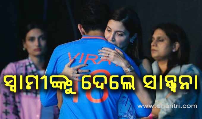ବିଶ୍ୱକପ୍‌ ହାରିବା ପରେ ଭାଙ୍ଗିପଡ଼ିଥିବା କୋହଲିଙ୍କୁ ଆଲିଙ୍ଗନ କରୁଛନ୍ତି ଅନୁଷ୍କା, ଭାଇରାଲ ହେଉଛି ଫଟୋ