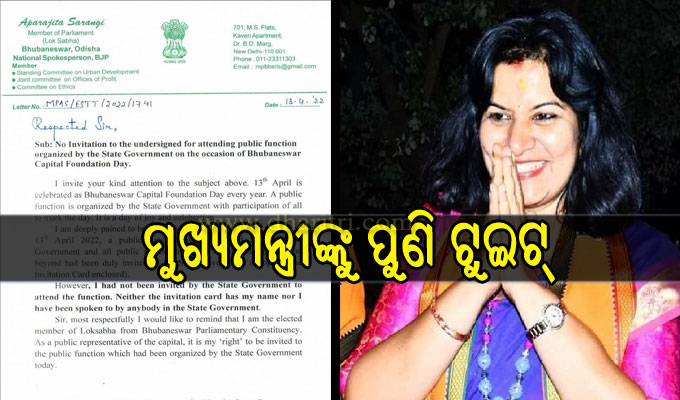 ଭୁବନେଶ୍ୱର,୧୪।୪(ବ୍ୟୁରୋ) : ରାଜଧାନୀ ଭୁବନେଶ୍ୱରର ୭୪ତମ ପ୍ରତିଷ୍ଠା ଦିବସ ପାଳନ ସମାରୋହକୁ ଏମ୍ପି ଅପରାଜିତା ଷଡଙ୍ଗୀକୁ ଡକା ନଯିବା ପ୍ରସଙ୍ଗକୁ ନେଇ ରାଜନୀତି ଜୋର ଧରିଛି। ଘଟଣାକୁ ନେଇ ଅପରାଜିତା କ୍ଷୋଭ ପ୍ରକାଶ କରିବା ସହ ଜଣେ ନିର୍ବାଚିତ ଜନପ୍ରତିନିଧିଙ୍କୁ କିଭଳି ସମ୍ମାନ ଦିଆଯିବା ଉଚିତ ତାହା ରାଜ୍ୟ ସରକାରଙ୍କ ଶିଖିବାର ଆବଶ୍ୟକତା ଅଛି ବୋଲି କହିଥିଲେ। ଏଥିସହ କାହିଁକି ଏହି କାର୍ଯ୍ୟକ୍ରମରେ ତାଙ୍କୁ ଡକାଗଲା ନାହିଁ ବୋଲି ସେ ମୁଖ୍ୟମନ୍ତ୍ରୀ ନବୀନ ପଟ୍ଟନାୟକଙ୍କୁ ଚିଠି ଲେଖି ପ୍ରଶ୍ନ କରିଥିଲେ। ତେବେ ପୁଣି ଗୁରୁବାର ଅପରାଜିତା ଆଉ ଏକ ଟୁଇଟ୍ କରି ମୁଖ୍ୟମନ୍ତ୍ରୀଙ୍କ ଦୃଷ୍ଟି ଆକର୍ଷଣ କରିଛନ୍ତି । ତାଙ୍କୁ ନିମନ୍ତ୍ରଣ କରା ନ ଯିବା ଘଟଣାର ତଦନ୍ତ ହେବ ବୋଲି ସେ ଆଶାବାଦୀ ଅଛନ୍ତି। ଭୁବନେଶ୍ୱରବାସୀ ଏନେଇ ରାଜ୍ୟ ସରକାରଙ୍କ ପଦକ୍ଷେପକୁ ଅପେକ୍ଷା କରିଛନ୍ତି । ଯଦି କିଛି ନ ହୁଏ ତାହେଲେ ସପ୍ତାହେ ଭିତରେ ପୁଣି ମୁଖ୍ୟମନ୍ତ୍ରୀଙ୍କୁ ଏହିକଥା ମନେ ପକାଇଦେବେ ବୋଲି ଟୁଇଟ୍ରେ ସେ ଉଲ୍ଲେଖ କରିଛନ୍ତି।