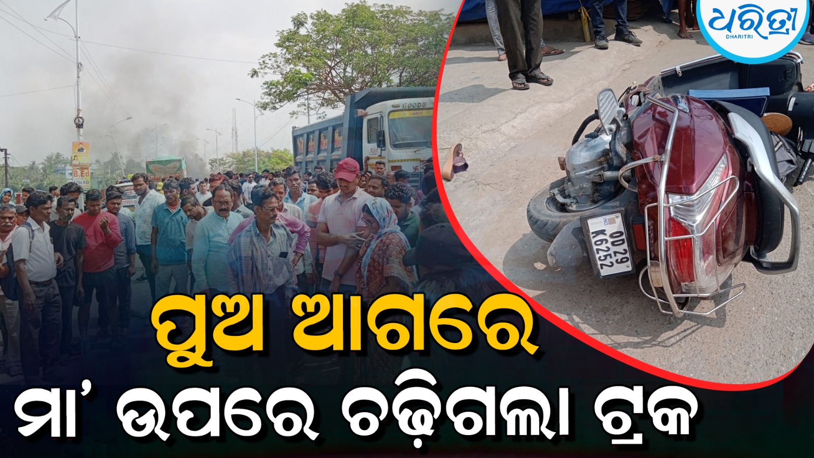 ତାଙ୍କ ନାମ ଇପସିତା ସାହୁ (୩୦)। ଏଥିସହ ଏହି ସ୍କୁଟି (ନଂ ଓଡି ୨୯ କେ ୬୨୫୨)ରେ ଯାଉଥିବା ସ୍ବାମୀ କାମାକ୍ଷା ପ୍ରସାଦ ଓ ୮ ବର୍ଷର ପୁଅ ଗୁରୁତର ହୋଇଛନ୍ତି। ଦୁର୍ଘଟଣା ପରେ ଘଟଣାସ୍ଥଳରେ ରିପୋର୍ଟ ଲେଖା ପର୍ଯ୍ୟନ୍ତ ଉତେଜନା ଲାଗିରହିଛି। ଗୁରୁତର ଦୁଇଜଣଙ୍କୁ ଜିଲା ମୁଖ୍ୟ ଚିକିତ୍ସାଳୟକୁ ସ୍ଥାନାନ୍ତର କରାଯାଇଛି ।