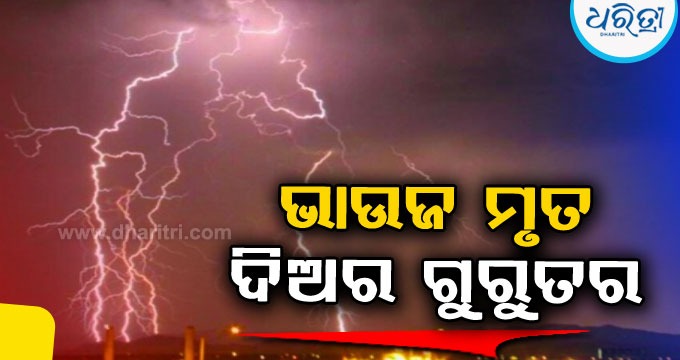 ଆସିକା,୧୯ା୫(ସୁରେନ୍ଦ୍ର ନାଥ ସାହୁ): ଗଞ୍ଜାମ ଜିଳା କୋଟିନଡା ଥାନା ଅନ୍ତର୍ଗତ ହୁମୁକି ଗ୍ରାମରେ ରବିବାର ଅପରାହ୍ନରେ କାଳବୈଶାଖୀ ପ୍ରଭାବରେ ପ୍ରବଳ ବର୍ଷା ସହ ବଜ୍ରପାତ ହୋଇଥିଲା। ବଜ୍ରପାତରେ ଜଣେ ମହିଳାଙ୍କ ମୃତ୍ୟୁ ଘଟିଥିଲା ବେଳେ ଅନ୍ୟଜଣେ ଆହତ ହୋଇଛନ୍ତି। ମୃତା ଜଣଙ୍କ ହେଲେ ସେହି ଗ୍ରାମର ରୁନୁ ଜେନା। ରୁନୁଙ୍କ ଦିଅର ବିଜୟ ଜେନା ଆହତ ହୋଇ ଆସିକା ଡାକ୍ତରଖାନାରେ ଚିକିତ୍ସିତ ହେଉଛନ୍ତି ।