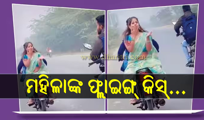 ସୋସିଆଲ ମିଡିଆରେ ଭାଇରାଲ ହେଉଥିବା ଏହି ଭିଡିଓରେ ଜଣେ ମହିଳା ବାଇକ୍ରେ ବସିଛନ୍ତି। ସେ ସଠିକ୍ ଭାବେ ନ ବସି ବିପରୀତ ପାର୍ଶ୍ୱରେ ବସି ଫ୍ଲାଇଙ୍ଗ୍ କିସ୍ ଦେଉଥିବାର ଦେଖାଯାଇଛି। ଯେଉଁ ବାଇକ ଉପରେ ମହିଳା ବସିଥିଲେ, ତାହାର ନମ୍ବର ପ୍ଲେଟ ନ ଥିଲା ଏହି ତିନିଜଣଙ୍କ ମଧ୍ୟରୁ କେହି ହେଲମେଟ ପିନ୍ଧି ନ ଥିଲେ।