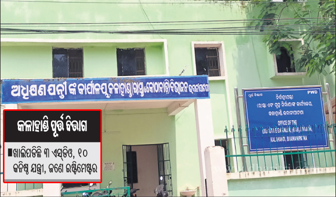 ଭବାନୀପାଟଣା,୧୧।୮(ଉତ୍ତମ କୁମାର ଦାଶ): କଳାହାଣ୍ଡି ଜିଲା ଭବାନୀପାଟଣାସ୍ଥିତ ପୂର୍ତ୍ତ ବିଭାଗରେ ଅନେକ ପଦବୀ ଖାଲି ପଡିଥିବାରୁ ଏବେ କାର୍ଯ୍ୟରେ ବାଧା ସୃଷ୍ଟି ହେଉଛି। ମିଳିଥିବା ସୂଚନା ଅନୁଯାୟୀ, ଜିଲାରେ ୩ଟି ଏସ୍ଡିଓ ପଦବି ଖାଲିପଡିଛି। ସେଗୁଡିକ ହେଲା ଏମ୍. ରାମପୁର ସବଡିଭିଜନ, କେସିଙ୍ଗା ସବଡିଭିଜନ ଓ ବିଲଡିଙ୍ଗ ସବ୍ (୨) ଡିଭିଜନର ଏସଡିଓ ପଦବି ଖାଲିପଡିଛି। କେସିଙ୍ଗା ଏସ୍ଡିଓ ଯାଜପୁରକୁ ଡେପୁଟେଶନରେ ଯାଇଥିବା ଓ ଏମ୍. ରାମପୁର ସବିଡିଭିଜନ ଏସ୍ଡିଓ ଭିଆରଏସ ନେଇଯିବାରୁ ପଦବି ଖାଲିପଡିଛି। ସେହିପରି ଜୁନାଗଡ ସବଡିଭିଜନ ଏସଡିଓ ଜିଲା କାର୍ଯ୍ୟାଳୟର ଇଷ୍ଟିମେଷ୍ଟର ଭାବେ ଦାୟିତ୍ୱ ତୁଲାଉଛନ୍ତି। ଜିଲାରେ ସମୂଦାୟ ୨୫ଟି କନିଷ୍ଠ ଯନ୍ତ୍ରୀ ପଦବୀ ରହିଥିବାବେଳେ ସେଥିମଧ୍ୟରୁ ବର୍ତ୍ତମାନ ୧୫ଜଣ କନିଷ୍ଟ ଯନ୍ତ୍ରୀ ଅଛନ୍ତି। ଅବଶିଷ୍ଟ ୧୦ଜଣ କନିଷ୍ଠ ଯନ୍ତ୍ରୀ ପଦବି ଖାଲିପଡିଛି। ଚଳିତବର୍ଷ ଜିଲାରେ ୧୦ଟି ପୋଲ ନିର୍ମାଣ ପାଇଁ ପ୍ରସ୍ତାବ ଯାଇଥିବାବେଳେ ସେଠାରୁ ଆସି ଟେଣ୍ଡର ହୋଇ ବର୍ଷ ଶେଷ ସୁଦ୍ଧା ନିର୍ମାଣ କାର୍ଯ୍ୟ ସରିବ ବୋଲି ଜଣାପଡିଛି। ସେହିପରି ଚଳିତ ବର୍ଷ ଜିଲାରେ ୨୨ଟି ନୂଆ ପୂର୍ତ୍ତ ବିଭାଗ ରାସ୍ତା ହେବ। ଏଥିରେ ଜିଲାର ଅନେକ ଗୁରୁତ୍ୱ ପୂର୍ଣ୍ଣ ରାସ୍ତା ଥିବାବେଳେ ସେଥିମଧ୍ୟରୁ ଜୁନାଗଡ ହାତୀନଦୀ ବ୍ରିଜଠାରୁ ଆଟିଗଁା ଓ ଆଟିଗଁାଠାରୁ ଏସ୍କୁଣ୍ଡାମାଲ ପର୍ଯ୍ୟନ୍ତ ରାସ୍ତା ରହିଛି। ଏହି ମାସ ଶେଷ ସୁଦ୍ଧା ଏହି ରାସ୍ତାର ଟେଣ୍ଡର ଡକାଯାଇ ଆସନ୍ତା ଆର୍ଥତ୍କ ବର୍ଷରେ ରାସ୍ତା ନିର୍ମାଣ ଶେଷ ହେବ ବୋଲି ବିଭାଗ ପକ୍ଷରୁ ଜଣାପଡିଛି। ଏହାସହ ଜିଲାର ୧୦ଟି ଗ୍ରାମ୍ୟ ଉନ୍ନୟନ ବିଭାଗ ରାସ୍ତାକୁ ପିଡବ୍ଲ୍ୟୁଡି ବିଭାଗକୁ ହସ୍ତାନ୍ତର କରାଯାଇଥିବା ବେଳେ ନୂତନ ରାସ୍ତା ପାଇଁ ବିଭାଗ ପକ୍ଷରୁ ଏହାର ପ୍ରସ୍ତାବ ଯାଇଥିବା ଜଣାପଡିଛି। ଏ ନେଇ ଭବାନୀପାଟଣାସ୍ଥିତ ପୂର୍ତ୍ତ ବିଭାଗ ଅଧୀକ୍ଷଣ ଯନ୍ତ୍ରୀ ଇଂ ପ୍ରକାଶ କୁମାର ବେହେରାଙ୍କୁ ପଚାରିବାରୁ କର୍ମଚାରୀ ଅଭାବରୁ କାର୍ଯ୍ୟରେ ବାଧା ସୃଷ୍ଟି ହେଉଥିବା କହିଥିଲେ। ଖାଲିପଡିଥିବା ପଦବି ପୂରଣ କରିବାକୁ ଜିଲାପାଳ ଓ ଉପରିସ୍ଥ ଅଧିକାରୀଙ୍କୁ ଜଣାଇଥିବା ପ୍ରକାଶ କରିଥିଲେ।