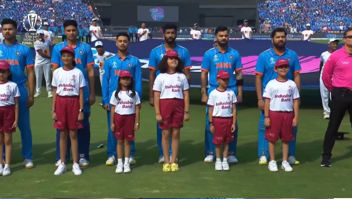 ଅହମଦାବାଦ,୧୯ା୧୧: ନରେନ୍ଦ୍ର ମୋଦି ଷ୍ଟାଡିୟମରେ ଫାଇନାଲ ମ୍ୟାଚ୍ ଅଷ୍ଟ୍ରେଲିଆ ଏବଂ ଭାରତ ମଧ୍ୟରେ ଜାରି ରହିଛି। ମ୍ୟାଚ ପୂର୍ବରୁ ପରମ୍ପରା ଅନୁଯାୟୀ ଦୁଇ ଟିମ୍ ଟସ ପରେ ଜାତୀୟ ସଂଗୀତ ଗାନ କରିଥିଲେ। ଏହି ସମୟରେ ଷ୍ଟାଡିୟମରେ ଉପସ୍ଥିତ ଥିବା ୧ ଲକ୍ଷରୁ ଅଧିକ ଦର୍ଶକେ ଭାରତୀୟ ଟିମ୍ ସହିତ ‘ଜନ ଗଣ ମନ’ ଗାଇ ଉଠିଥିଲେ। ଯାହା ସମ୍ପୂର୍ଣ୍ଣ ମାହୋଲକୁ ଦେଶଭକ୍ତିର ପରିପୂର୍ଣ୍ଣ ଲରିଥିଲା। ଏହା ପୂର୍ବରୁ ଭାରତୀୟ ବାୟୁସେନାର ସୂର୍ୟ୍ୟକିରଣ ଟିମ୍ ଦର୍ଶନୀୟ କଲା କୌଶଳ ପ୍ରଦର୍ଶନ କରିଥିଲେ।