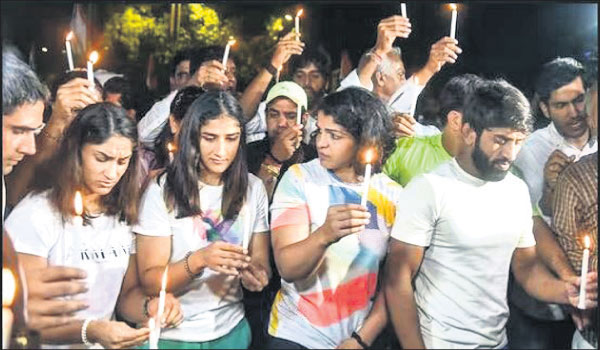 ନୂଆଦିଲ୍ଲୀ,୨୪ା୫(ପି.ଟି.): ଭାରତୀୟ ରେସ୍ଲିଂ ଫେଡେରେଶନ (ଡବ୍ଲ୍ୟୁଏଫ୍ଆଇ) ସଭାପତି ବ୍ରିଜ୍ଭୂଷଣ ଶରଣ ସିଂଙ୍କ ଯୌନ ନିର୍ଯାତନା ମାମଲାରେ ଆନ୍ଦୋଳନରତ ରେସଲର ମାନେ ଇଣ୍ଡିଆ ଗେଟ୍ ପର୍ଯ୍ୟନ୍ତ ମହମବତୀ ଶୋଭାଯାତ୍ରା କରିଛନ୍ତି। ନୂଆଦିଲ୍ଲୀର ଯନ୍ତରମନ୍ତରଠାରେ ଖେଳାଳିଙ୍କ ଆନ୍ଦୋଳନକୁ ଏକମାସ ପୁରିବା ଫଳରେ ହଜାର ହଜାର ସମର୍ଥକଙ୍କ ଗହଣରେ ଏହି କ୍ୟାଣ୍ଡେଲ ମାର୍ଚ୍ଚ ଅନୁଷ୍ଠିତ ହୋଇଯାଇଛି। ଅପରାହ୍ନ ୫ଟାରେ ଏହି ଶୋଭାଯାତ୍ରା ହୋଇଥିବା ବେଳେ ଏଥିରେ ସାଧାରଣ ଜନତା ଓ ବିଭିନ୍ନ ରାଜନୈତିକ ଦଳର ସଦସ୍ୟ ଯୋଗ ଦେଇଥିଲେ। ଏହା ସହିତ ରେସ୍ଲର ମାନେ ଆସନ୍ତା ୨୮ ତାରିଖରେ ନୂତନ ସଂସଦ ଭବନ ସମ୍ମୁଖରେ ଏକ ମହିଳା ପଞ୍ଚାୟତ କରିବା ପାଇଁ ଘୋଷଣା କରିଛନ୍ତି। ଉଲ୍ଲେଖଯୋଗ୍ୟ, ଜଣେ ନାବାଳିକାଙ୍କ ସମେତ ୭ ଜଣ ରେସ୍ଲର ବ୍ରିଜ୍ଭୂଷଣଙ୍କ ନାମରେ ଯୌନ ଶୋଷଣ ଅଭିଯୋଗ ଆଣିଛନ୍ତି।