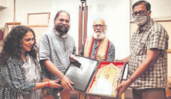 ଭୁବନେଶ୍ୱର, ୨୨।୧୦(ବ୍ୟୁରୋ):ଓଡ଼ିଶା ଲଳିତ କଳା ଏକାଡ଼େମୀ ତରଫରୁ ଖ୍ୟାତନାମା ଚିତ୍ରଶିଳ୍ପୀ ଯତୀନ ଦାସଙ୍କୁ ଏକଡ଼େମୀର ସର୍ବୋଚ୍ଚ ସମ୍ମାନ ‘ଧର୍ମପଦ ପୁରସ୍କାର’ ପ୍ରଦାନ କରାଯାଇଛି। ୨୦୧୩ ମସିହା ଲାଗି ତାଙ୍କୁ ଏହି ସମ୍ମାନ ପ୍ରଦାନ କରାଯାଇଛି। ଗତ ଅଗଷ୍ଟ ୧୦ରେ ଓଡ଼ିଆ ଭାଷା ସାହିତ୍ୟ ଓ ସଂସ୍କୃତି ମନ୍ତ୍ରୀ ଜ୍ୟୋତିପ୍ରକାଶ ପାଣିଗ୍ରାହୀ ୨୦୦୯ରୁ ୨୦୧୫ ପର୍ଯ୍ୟନ୍ତ ଧର୍ମପଦ ପୁରସ୍କାର ପ୍ରଦାନ କରିଥିଲେ। କୋଭିଡ୍‌ ସଂକ୍ରମଣ ଯୋଗୁ ଏଥର କୌଣସି ଉତ୍ସବର ଆୟୋଜନ କରା ନ ଯାଇ ଶିଳ୍ପୀଙ୍କୁ ସେମାନଙ୍କ ବାସଭବନରେ ପୁରସ୍କାର ପ୍ରଦାନ କରାଯିବା ସହ ସମ୍ବର୍ଦ୍ଧିତ କରାଯାଇଥିଲା। ତେବେ ଯତୀନ ଦାସ ନୂଆଦିଲ୍ଲୀରେ ଥିବାରୁ ସେ ପୁରସ୍କାର ଗ୍ରହଣ କରିପାରି ନ ଥିଲେ। ବୁଧବାର ଏକାଡ଼େମୀ ସଚିବ ଗଜେନ୍ଦ୍ର ପ୍ରସାଦ ସାହୁ ଦିଲ୍ଲୀ ଗସ୍ତ କରି ତାଙ୍କୁ ପୁରସ୍କୁତ କରିଛନ୍ତି। ଜାତୀୟ କଳା ସଂଗ୍ରହାଳୟର ମହାନିର୍ଦ୍ଦେଶକ ଅଦ୍ୱୈତ ପ୍ରସାଦ ଗଡ଼ନାୟକ, ସ୍ଥାପତ୍ୟ ଶିଳ୍ପୀ ନିବେଦିତା ଗଡ଼ନାୟକ ଏହି ଅବସରରେ ଉପସ୍ଥିତ ଥିଲେ।