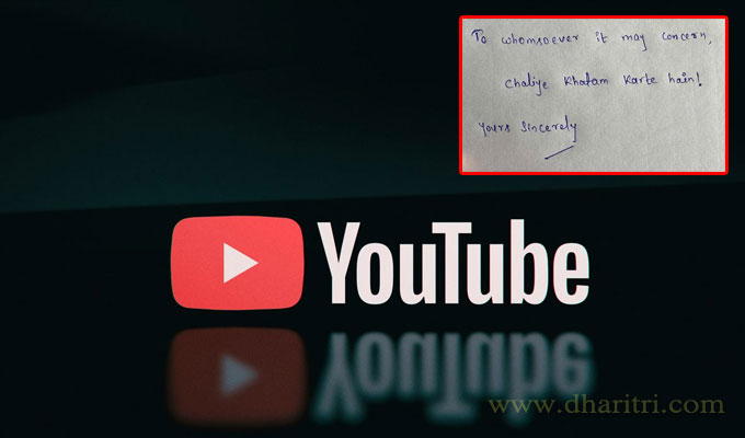 ୟୁଟ୍ୟୁବ୍ ଏହାର ଟୁଇଟର ହ୍ୟାଣ୍ଡେଲରେ ସ୍କ୍ରିନ ଶଟ୍କୁ ‘ନାଇସ୍ ରେଜିଗ୍ନେଶନ ଲେଟର’ କ୍ୟାପ୍ସନ ଦେଇ ପୋଷ୍ଟ କରିଛି। ଉକ୍ତ ଇସ୍ତଫା ପତ୍ର କମ୍ ଶବ୍ଦରେ ଲେଖାଯାଇଛି। ‘ଟୁ ହୁମ୍ସଏଭର ଇଟ୍ ମେ କନ୍ସନ୍, ଚଲିୟେ ଖତମ୍ କରତେ ହୈ, ଇଓର୍ସ ସିନସିୟରଲି’ ବୋଲି ସେଥିରେ ଲେଖାଯାଇଛି।ଏହି ପୋଷ୍ଟରେ ଲୋକେ ଭଳିକି ଭଳି ପ୍ରତିକ୍ରିୟା ଦେଉଛନ୍ତି। କେହି କେହି ଏହାକୁ ସିଧା କଥା ବୋଲି କହୁଥିବା ଦେଖାଯାଉଛି।