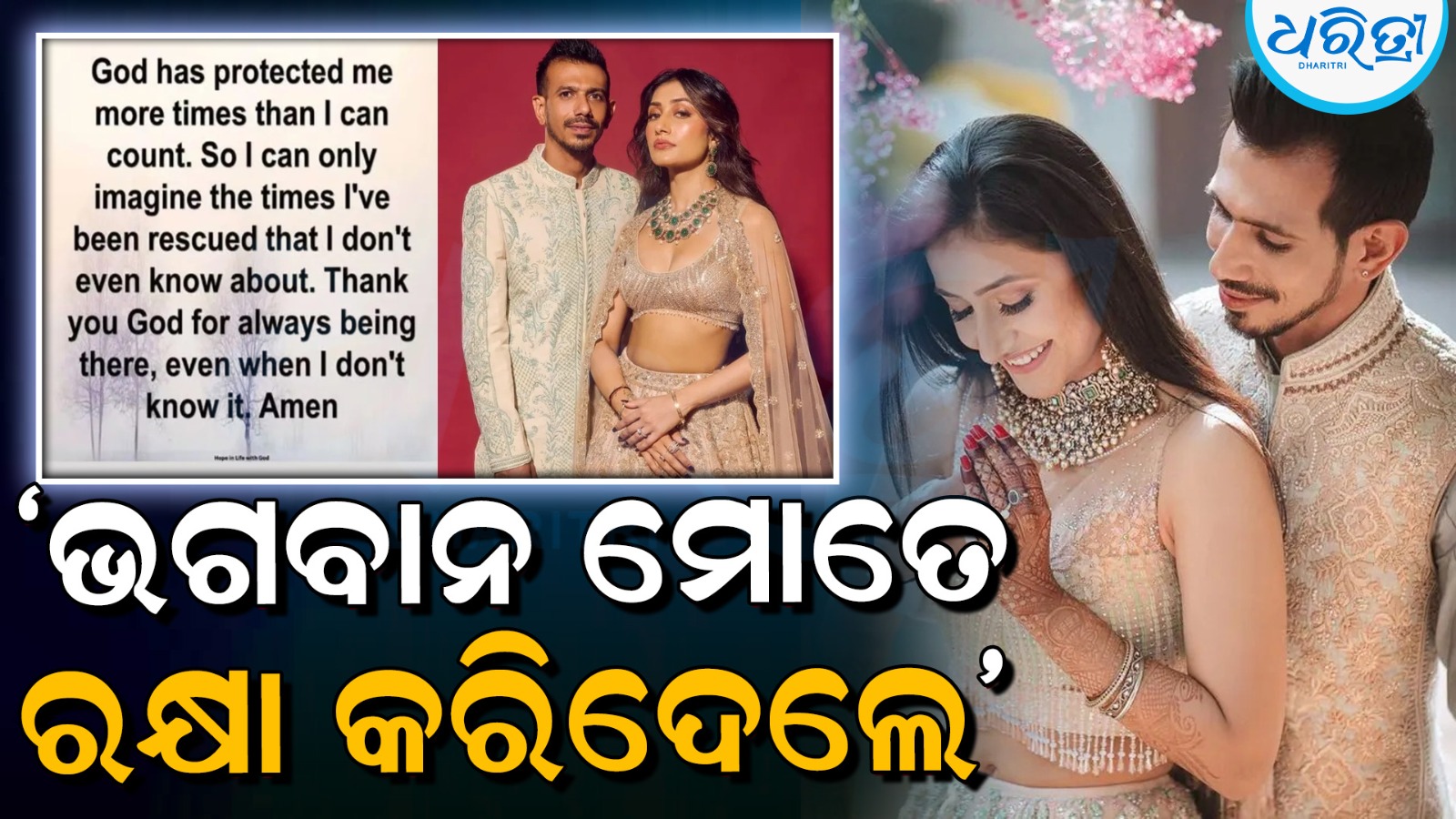ୟୁଜଭେନ୍ଦ୍ର ଚହଲ ସୋସିଆଲ ମିଡିଆରେ ଏକ ପୋଷ୍ଟ କରିଛନ୍ତି। ଯେଉଁଥିରେ ସେ ଭଗବାନଙ୍କୁ ଧନ୍ୟବାଦ ଦେଇଥିଲେ। “ଭଗବାନ ମୋତେ ଗଣନା କରିବା ଅପେକ୍ଷା ଅଧିକ ଥର ସୁରକ୍ଷା ଦେଇଛନ୍ତି,”। ତେଣୁ ମୁଁ କେବଳ ଏପରି ଏକ ସମୟ କଳ୍ପନା କରିପାରିବି ଯେତେବେଳେ ମୁଁ ସବୁଥିରୁ ମୁକୁଳିଯାଇଛି, ଯାହା ବିଷୟରେ ମୁଁ ଜାଣିନାହିଁ। ଭଗବାନ, ମୁଁ ଜାଣି ନ ଥିଲି, ତଥାପି ସବୁବେଳେ ସେଠାରେ ଥିବାରୁ ତୁମକୁ ଧନ୍ୟବାଦ। ଆମିନ୍।