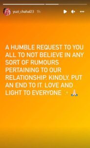 ଚହଲ ଏବଂ ତାଙ୍କ ସ୍ତ୍ରୀ ତଥା କୋରିଓଗ୍ରାଫର ଧନଶ୍ରୀ ବର୍ମାଙ୍କ ମଧ୍ୟରେ ମନୋମାଳିନ୍ୟ ହୋଇଥିବା ନେଇ ବେଶ୍ ଆଲୋଚନା ହେଉଛି। ଧନଶ୍ରୀ ତାଙ୍କ ଇନଷ୍ଟାଗ୍ରାମ ଆକାଉଣ୍ଟରେ ତାଙ୍କ ନାମରୁ ଚହଲ ସରନେମ୍କୁ ହଟାଇ ଦେଇଛନ୍ତି। ଏଥିସହିତ ଚହଲ ମଧ୍ୟ ନିକଟରେ ଇନଷ୍ଟାଗ୍ରାମ ଷ୍ଟାଟସରେ ଲେଖିଥିଲେ ‘ନ୍ୟୁ ଲାଇଫ୍ ଲୋଡିଂ’। ଏହି ପୋଷ୍ଟ ଶେୟାର କରିବାର କିଛି ସମୟ ପରେ ସେ ଏହାକୁ ଡିଲିଟ୍ କରିଦେଇଥିଲେ।